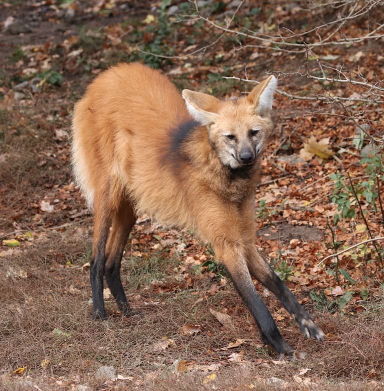 A sabretooth tiger getting assimilated into a rubber foxy fnaf suit.