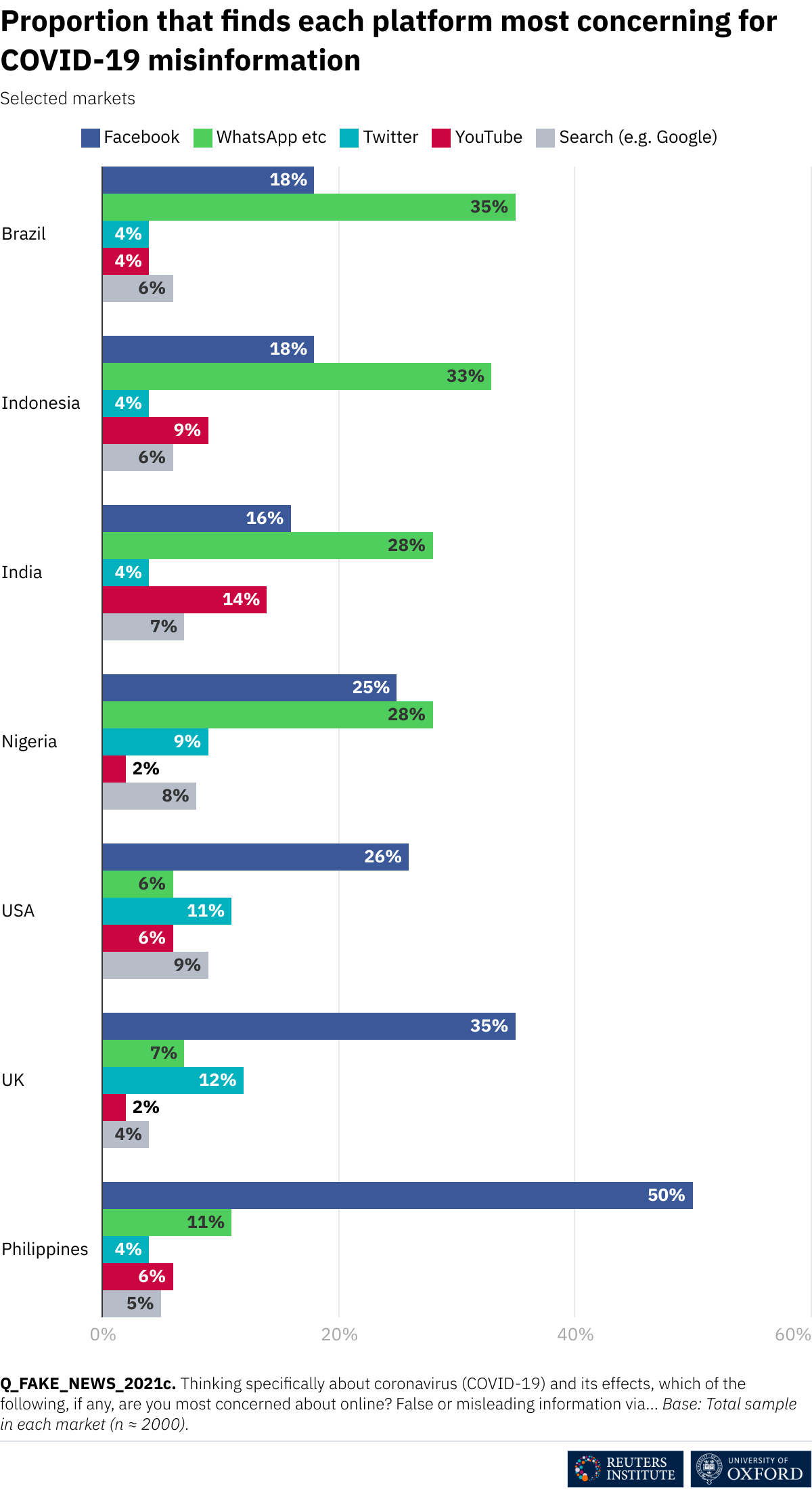Proportion that finds each platform most concerning for COVID-19 misinformation https://img.datawrapper.de/M8xah/full.png via @risj_oxford