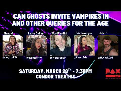 We discussed if Ghosts Can Invite Vampires in and other queries at #PAXEast Moderated by @ladyluck34.bsky.social with @chaosbria.com @wordfangirl.bsky.social @magitekdad.bsky.social & me!